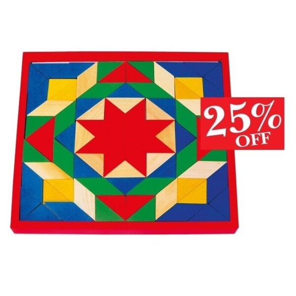Dette emne er på vej ud af programmet. Kun få tilbage. Halv pris. 50% rabat !Flot farverigt puslespil med forskellige former. Du kan bruge form og farver, til at kreere dit eget "kunstværk".Ca Str: 27 x 27 cm 80 brikkerDette produkt tillægges fragt ved “kassen”Ran-Play varenr: 6404060