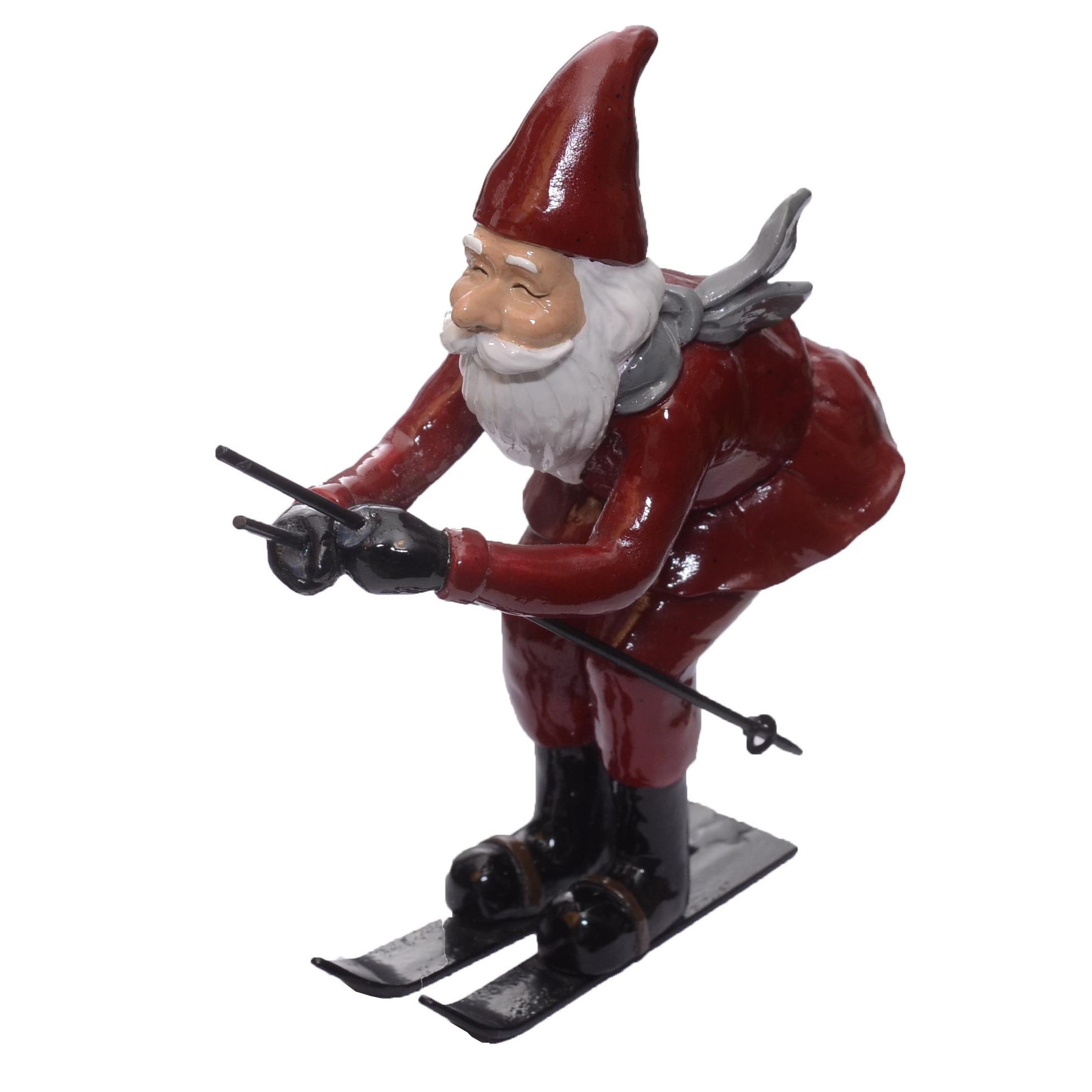 Nissefar på ski Keramik fra det svenske firma Harvesttime Nissefar er håndmalet Måler L: 15 cm, H: 18 cm