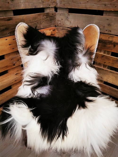 Skindet måler 140cm.Unikt Islandsk lammeskind. Skindet stammer fra bæredygtig produktion på Island. Når du bestiller dette skind, så er det også dette skind som du for tilsendt. Alle skindene er nummereret med unikke numre.