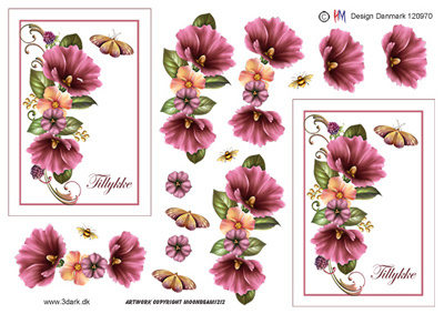 HM-Design, 3D Smuk blomsterranke, med baggrund og tekst "Tillykke".