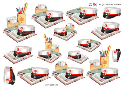 HM-Design, 3D Rød studenterhue med bog og skriveredskaber.