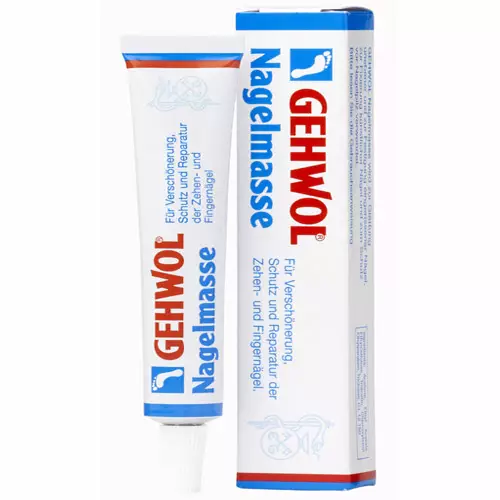 Gehwol - GEHWOL Nagelmasse Udjævner, styrker og gendanner sunde, naturlige negle GEHWOL Nagelmasse er en specialmasse til reparation af beskadigede, svækkede eller ujævne negle. Den bruges til at udjævne neglens overflade, styrke revnede negle og genskabe en pæn form, også når en del af neglen mangler. Massen hæfter stærkt og fleksibelt, så du får et naturligt og holdbart resultat. Indeholder desinficerende ingredienser, som hjælper med at forebygge neglesvamp og betændelse, samtidig med at den beskytter mod tryk og stød. Efter hærdning kan neglen files, klippes og lakeres som normalt – for et flot og sundt udseende. Fordele: Reparerer og udjævner beskadigede eller ujævne negle Beskytter neglekanten og neglelejet mod tryk og stød Forebygger betændelse og svampeangreb Giver en naturlig og holdbar overflade Kan bruges på både finger- og tånegle Neglelak kan anvendes ovenpå Anvendelse: Rens og tør neglen grundigt. Påfør et tyndt lag GEHWOL Nagelmasse på det beskadigede område. Form og glat overfladen efter behov. Når massen er hærdet, kan neglen files og lakeres som ønsket. Indhold: 15 ml