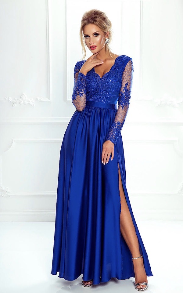 Luna Emo i m�rkebl� med �rmer og blonder Kategori: Forhandlere Lagerstatus Pris Weddingdeluxe (bridalstore) in_stock DKK 1.299,00 Besøg