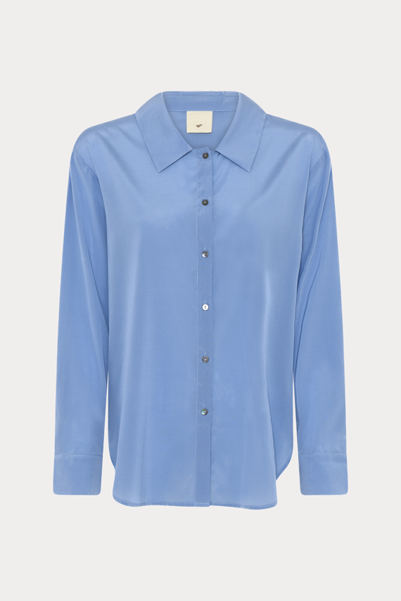 Metra skjorten er en elegant og tidløs style med en oversized silhuet og raffinerede detaljer. Den klassiske krave og de buede kanter skaber et balanceret udtryk, mens de diskrete sideslidser tilfører lethed og bevægelse.