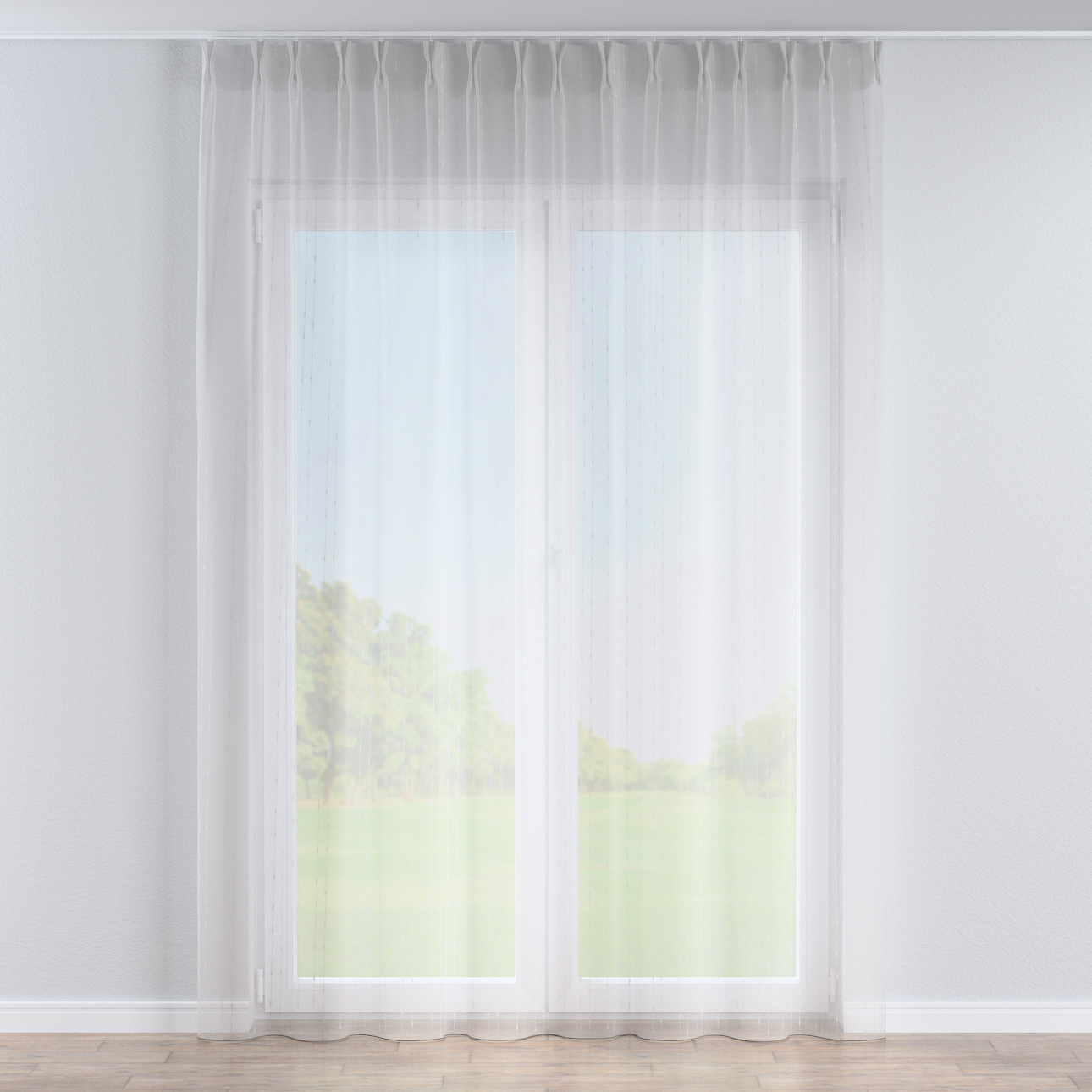 Gardin med dobbel fast læg ✔ Skræddersyet - klar til montering hos dig✔ Direkte fra systuen - uden fordyrende mellemled✔ Perfekt fald - med indsyet tyngdebånd og ekstra tyngde i hjørner ved søm✔ Kvalitetstekstiler – hovedsaglig fra Portugal✔ EU produceret - vores egen systue Gardin med dobbel fast læg er beregnet til montering i en gardinskinne og skaber jævne, ca. 7 cm dybe bølger, hvilket giver et stilrent og elegant udtryk. Velegnet til store vinduespartier, hvor gardinet nemt skal kunne trækkes til og fra. Bølger og montering Gardinet er sammensyet med læg og har kroge indsat med intervaller på ca.13 cm, der gør at folderne aldrig hives flade. Opmåling ved 2 stk pr. vindue Bredde: Mål fra midten af gardinskinnen til skinnens yderkant. Rund altid op til nærmeste cm, der kan deles med 10 cm. Højde: Mål fra 1 cm under bunden af skinnen og ned. Husk, at gardinskinnen altid vil være synlig – det er en forudsætning for, at systemet fungerer korrekt. Tolerancer Størrelsen vil altid have en tolerance på +/- 5 cm i bredden og +/- 2 cm i længden. Stoffets bredde og sammensyning Ved bestilling af f.eks. bredde 130 cm vil stoffet være bredere og vil dække 130cm når det er trukket for - modsat andre gardintyper, der først skal rynkes og dermed formindskes dækkefladen fra feks 130 cm til 65 cm. Vores voile wavegardiner vil aldrig blive syet sammen af flere stofbaner, da vores voiletekstiler har stofbredder fra 290cm og bruges horisontalt. Hvis du skal bruge gardiner længere end 285cm, så kontakt os. Afslutning og tyngdebånd Gardiner afsluttes forneden med indsyede tyngdebånd Ved lange gardiner kan du med fordel bruge denne gardin-fører stang