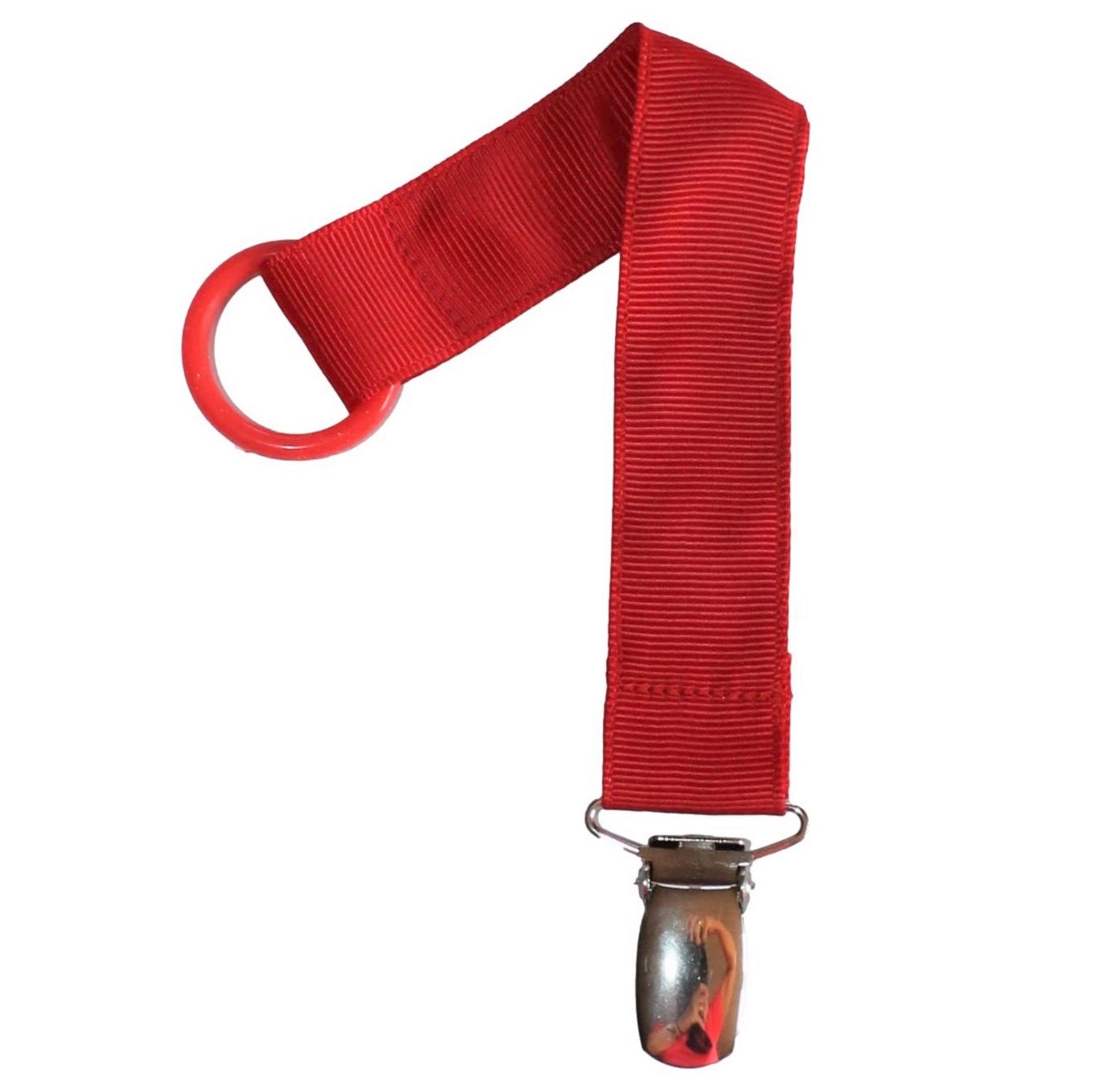 Sutteholder med barnets navn - Rød Sutteholderen holder styr på sutten, så barnet ikke taber den. Syet i dobbelt grosgrain bånd Clipsen er nikkelfri Sutten sættes fast med en silikonering Længden er 22 cm og overholder den korrekte længde i henhold til Safety Standard EN-12586:2007 Sutteholderne er håndlavede i Danmark Kan bruges til sutter med ring og med knop (se billede) Ønsker du navn på, kan du vælge mellem flere trådfarver. (Vi broderer med skrifttypen som vi synes bliver pænest til navnet) Bemærk: brodereiet kan ses på bagsiden.