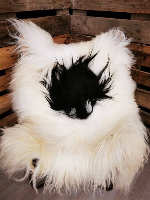 Skindet måler 140cm.Unikt Islandsk lammeskind. Skindet stammer fra bæredygtig produktion på Island. Når du bestiller dette skind, så er det også dette skind som du for tilsendt. Alle skindene er nummereret med unikke numre.