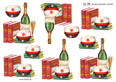 3D ark HM-design studenterhat med rødt bånd, bøger og champagneflaske.