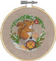 Juleophæng Egern ø10cm, stof 'Nature linen 10/26'' with Mouline yarn'.
