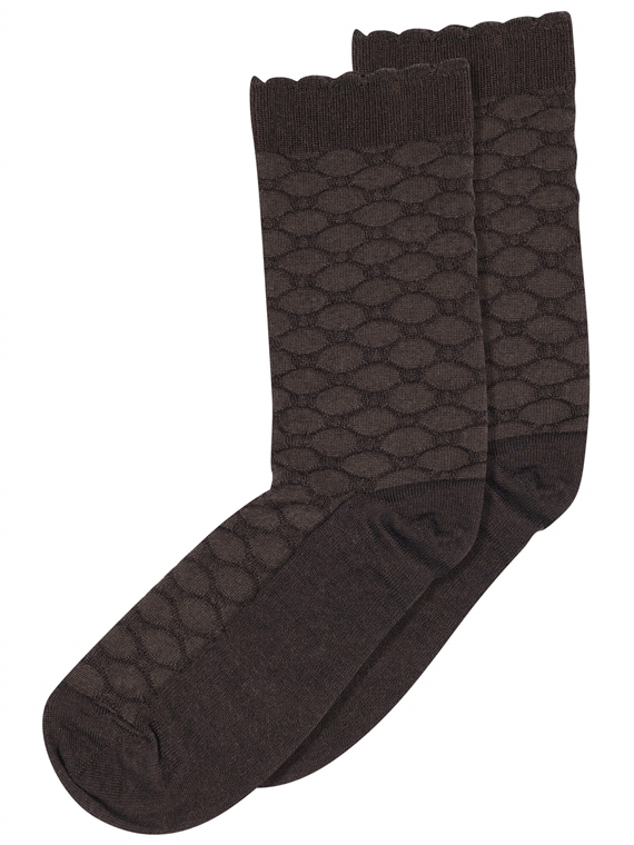 Super bløde Grace strømper i lækker kvalitet. Strømperne har en mønstret strik og en dekorativ picot-kant elastikken. Gace sokker har uld og silke i sammensætningen, hvilket gør dem super bløde, varme om vinteren og i stand til at transportere varme og sved godt om sommeren. Denne strømpe kommer i den lækre brune strømper, som bare passer perfekt sammen med alt ens lækre efterårstøj hjemme i garderoben!