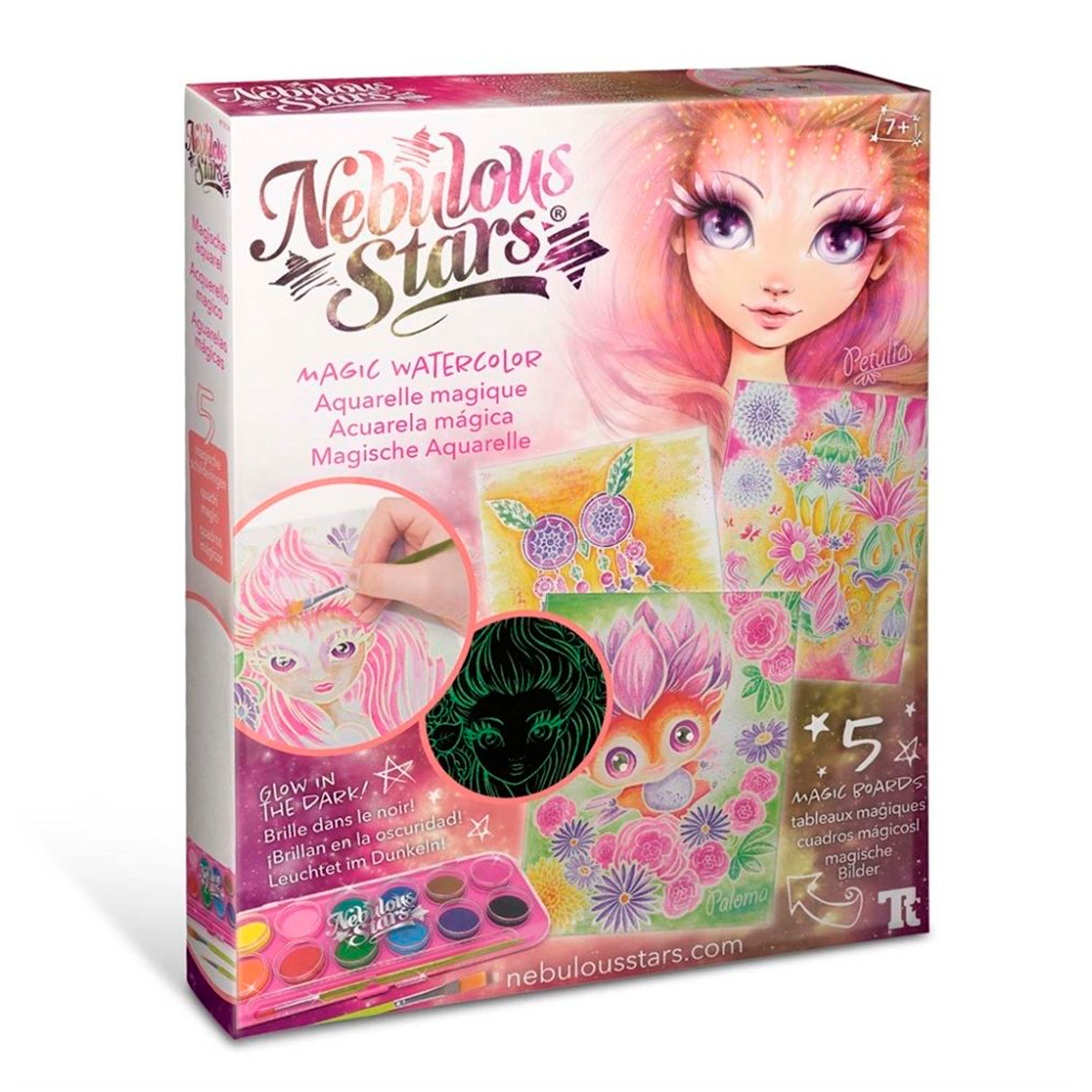 Pakke fra Nebulous Star med 5 billeder der skal farvelægges med de medfølgende vandfarver. Billederne er trykt med streger, der er selvlysende i mørket, og som samtidig hjælper med at holde farverne inde på felterne. Mal smukke eventyrlige billeder og nyd at se på dem både i lys og mørke. Æsken måler 28 x 22 x 4,5 cm Fra ca 7 år Se alle varer fra Nebulous Star