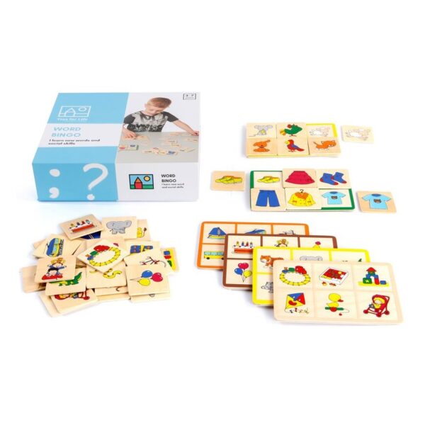Ord-bingo til træning i ord, ords betydning og udtalelsen af ordet.Spillet er god til sprogudvikling.Et godt og hyggeligt familiespil.Der medfølger 6 bingokort i træ (15 x 10 cm)Der er også 36 matchende kort (5 x 5 cm) (ØNSKER DU AT PRINTE SIDEN? SÅ GÅ NEDERST PÅ SIDEN OG TRYK PÅ PRINTER)Dette produkt leveres fragtfrit men hvis samlet ordre er under kr. 800,- kan der blive påført kr. 80,- i ekspeditionsgebyr!Ran-Play varenummer: 6801090.CE: 17*35000