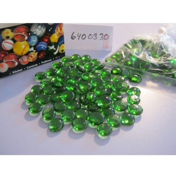 Flade Kalaha brikker i grøn glas.Ca. 80 stk. ! I et normalt Kalaha spil, skal man kun bruge 72 stk.Ikke trille brikkerMål. : 17 mmDette produkt tillægges fragt ved “kassen”Ran-Play varenr.: 640033088*105015