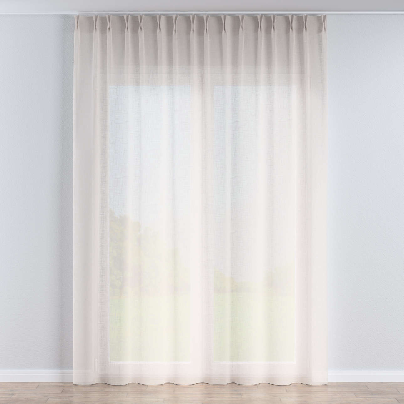 Gardin med dobbel fast læg ✔ Skræddersyet - klar til montering hos dig✔ Direkte fra systuen - uden fordyrende mellemled✔ Perfekt fald - med indsyet tyngdebånd og ekstra tyngde i hjørner ved søm✔ Kvalitetstekstiler – hovedsaglig fra Portugal✔ EU produceret - vores egen systue  Gardin med dobbel fast læg er beregnet til montering i en gardinskinne og skaber jævne, ca. 7 cm dybe bølger, hvilket giver et stilrent og elegant udtryk. Velegnet til store vinduespartier, hvor gardinet nemt skal kunne trækkes til og fra. Bølger og montering Gardinet er sammensyet med læg og har kroge indsat med intervaller på ca.13 cm, der gør at folderne aldrig hives flade. Opmåling ved 2 stk pr. vindue Bredde: Mål fra midten af gardinskinnen til skinnens yderkant. Rund altid op til nærmeste cm, der kan deles med 10 cm. Højde: Mål fra 1 cm under bunden af skinnen og ned. Husk, at gardinskinnen altid vil være synlig – det er en forudsætning for, at systemet fungerer korrekt. Tolerancer Størrelsen vil altid have en tolerance på +/- 5 cm i bredden og +/- 2 cm i længden. Stoffets bredde og sammensyning Ved bestilling af f.eks. bredde 130 cm vil stoffet være bredere og vil dække 130cm når det er trukket for - modsat andre gardintyper, der først skal rynkes og dermed formindskes dækkefladen fra feks 130 cm til 65 cm. Vores voile wavegardiner vil aldrig blive syet sammen af flere stofbaner, da vores voiletekstiler har stofbredder fra 290cm og bruges horisontalt. Hvis du skal bruge gardiner længere end 285cm, så kontakt os. Afslutning og tyngdebånd Gardiner afsluttes forneden med indsyede tyngdebånd Ved lange gardiner kan du med fordel bruge denne gardin-fører stang