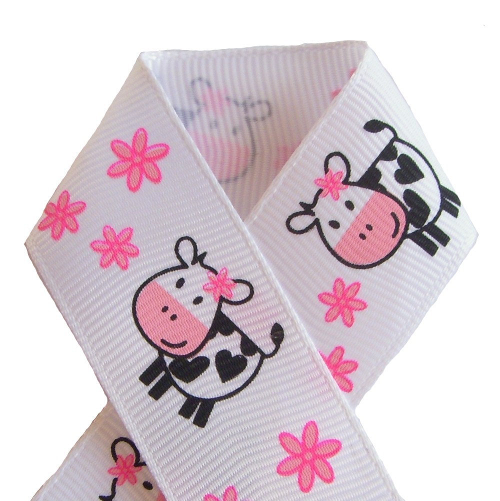 Grosgrainbånd - Glad ko