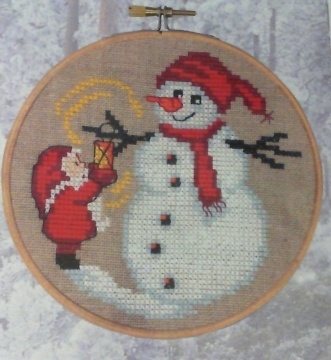 Juleophæng, nisse og snemand, ø13cm, stof hør 10 thr. pr.cm.