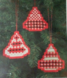 Julebroderi hardanger, juletræer 3stk. rød/hvid 7,5 x 8cm.