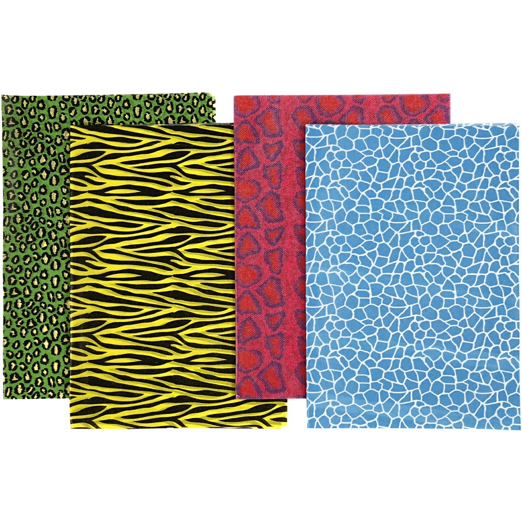 Decoupagepapir Vivi Gade farvet dyreprint, Sortiment af halvtransparent decoupagepapir pakket med 8 ass. design ark 25x35cm, 17gr.