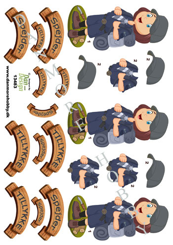 Dan design, 3D Blå pigespejder, Tekst "Spejder" og "Tillykke".