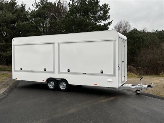 Præsentabel prisstærk salgsvogn i aerodynamisk design Stort indretningspotentiale Velisoleret og langtidsholdbar salgsvogn, med sandwichkonstruerede og isolerede sider og tag (30 mm) beklædt med rengøringsvenlig hvid glasfiber ind- og udvendig Kraftig finérbund (18 mm) belagt med pæn linoleum med træstruktur Afrundet front og optimeret brændstoføkonomi 2 salgsklapper, der er nemme at åbne Bordplade ved salgsåbning i pæn hvid laminat Hylder over og under salgsklap til opbevaring Skab (100 cm) m/dobbeltvask med koldt og varmt vand 230 V lysarmatur i loft 2 stikkontakter Vil du gerne eje en salgsvogn der bliver husket? Så få den speciallavet af Selandia – Vi har styr på det hele! Find de bedste tilbud vi har på kvalitets salgsvogne her. | Aeroline 622 salgsvogn m/skab og vask | Ny trailer > Mobile salgsenheder > Salgsvogne
