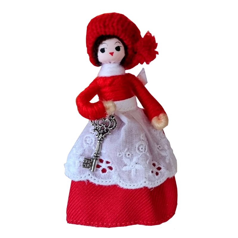 Årets nissemor med nøgle 2025 fra Anne Beate Design Højde: ca. 11 cm Alle Anne Beate nisser er håndlavede og håndmalede. Alt er håndarbejde, lige fra de små håndstøbte zinktræsko til det fint syede tøj. Nisserne er lavet over et stålskelet og er derfor bøjelige og kan let formes til at stå som man ønsker. Anne Beate nisserne er lavet med stort omhu og koncentration, lige fra de fint beviklinger til de fine små detaljer. Nisserne bliver fremstillet både i Ringsted i Danmark og på et workshop i Hanoi i Vietnam.