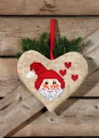 Julehjerte med julemand 28 x 24cm stof jute 4 tråde pr. cm.