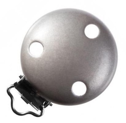 Ensfarvede træclips i fine farver Indvendig plastkindsats til beskyttelse af tøj eller lign. når clipsene monteres Træclipsene er helt giftfri, bly og nikkelfri Træclipsene har 3 lufthuller Diameter ca. 35 mm EU standard DIN EN71-3 Lav din egen sutteholder, eller brug clipsen til at holde legetøj fast, så det ikke falder på gulvet