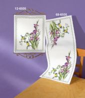 Broderi bordløber blåmejse ved blomst 27 x 66cm, stof aida hvid 5,4thr. pr cm.
