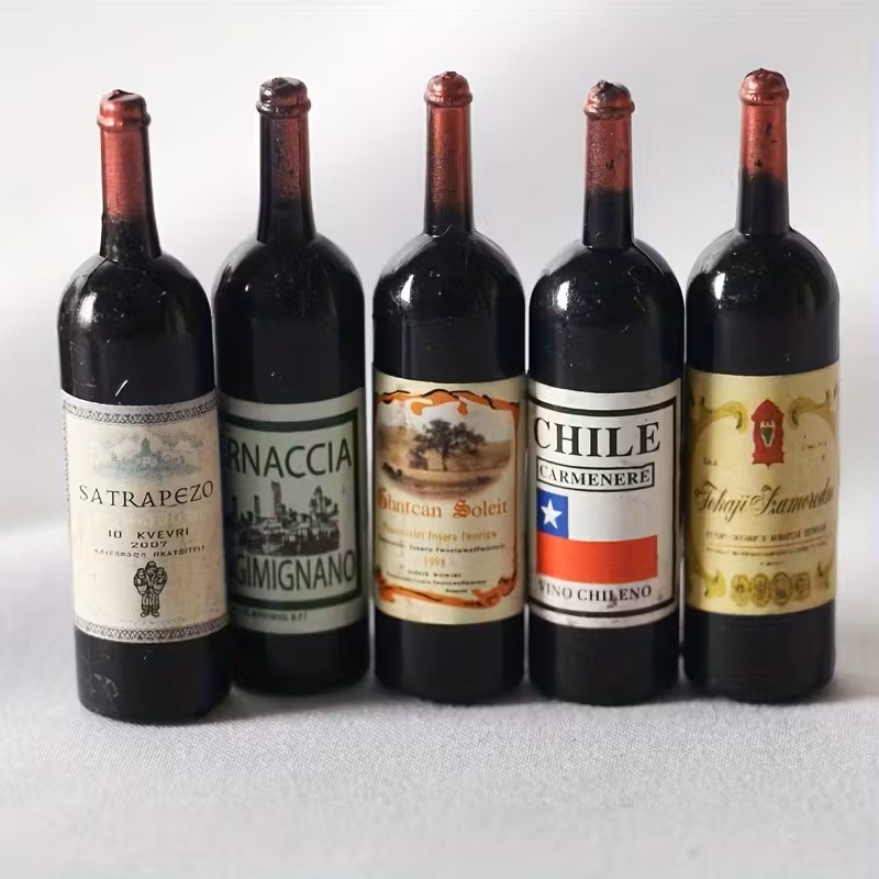 Vinflasker 5 stk. blandet. Højde ca. 4,5 cm Perferkt til nisselandskabet