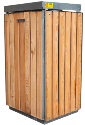 Affaldsbeholderen er fremstillet af galvaniseret stål, lærketræ, rustfrie møtrikker og bolte. Brovst B96 Affaldsbeholder er fremstillet med en selvbærende ramme i galvaniseret vinkelstål, som beskytter træet.Specifikationer:Højde: 980 mmBredde: 550 mmDybde: 500 mmVægt: 28 kgSækkestørrelse: 110 L Forventes leveringstid: 1-2 uger