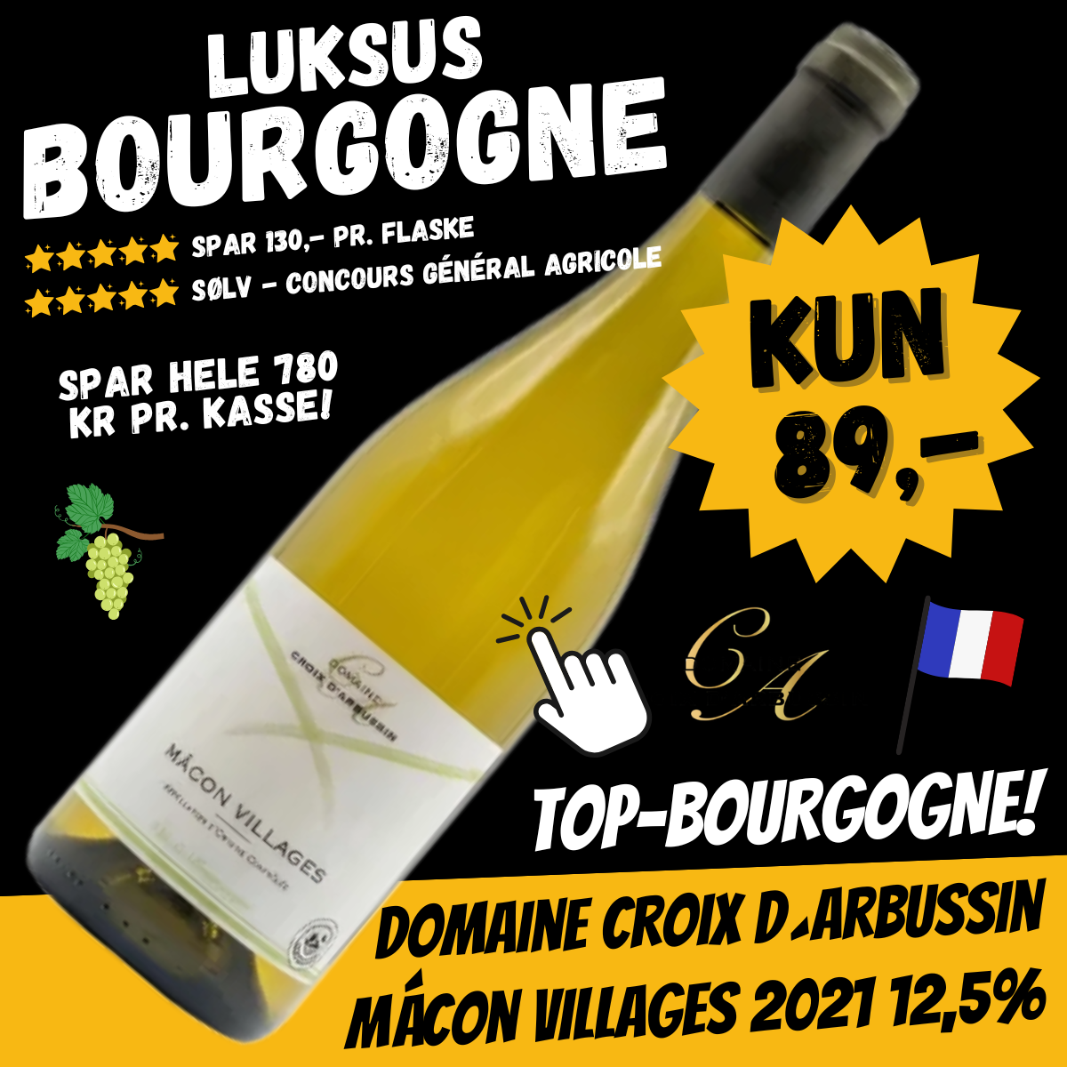 TOP-BOURGOGNE-KUP Domaine Croix D’Arbussin Mâcon Villages 2021 er en tør, frugtdrevet og fadfri hvidvin, der rammer perfekt ned i kategorien “hverdags-Bourgogne til seriøse vinelskere”. Druerne kommer fra kalk- og lerholdige marker i Mâconnais, hvor klimaet er en smule varmere end i den klassiske Côte d’Or, hvilket giver en dejligt moden og charmerende frugtprofil. I glasset byder den på lys citrongul farve, duft af citron, lime, grønne æbler, pære og hvide blomster, mens smagen er saftig med stenfrugtnoter, rank mineralsk syre og flot længde i eftersmagen. Toppet af sølvmedalje ved Concours des vins du Mâconnais et du Beaujolais 2023, er det en value-vin, der puncher over vægten Se mere om vinen her: https://www.domaine-croixdarbussin.com/en/le-domaine/ Domaine Croix d'Arbussin I hjertet af Mâconnais, i Hurigny og Igé i Bourgogne, ligger Domaine Croix d'Arbussin, hvor historien med vinproduktion startede i 1980'erne med plantning af vinmarker. Domaine Croix d'Arbussin er en mikro-producent med fokus på bæredygtighed og kvalitet over kvantitet. Vingården, der drives af Laurent Gobet, dyrker ca. 55 hektar vinmarker i Hurigny og Igé med din store respekt for naturen under HEV niveau 3 certificering. Der arbejdes med græs mellem rækkerne og minimal kemisk behandling for at bevare biodiversitet og terroirets unikke karakter. Laurent Gobet, som overtog driften i 1992, etablerede sit eget vineri i 2020 og har siden fokus på at fremstille vine, der afspejler områdets særpræg og hans passion for håndværket. Denne Bourgogne Pinot Noir er et fremragende eksempel på vingårdens vision om at skabe små, intense og håndværksmæssige vine.