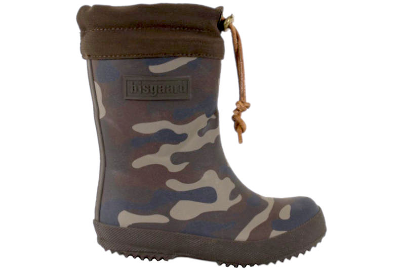 BISGAARD ARMY. Smart termogummistøvle med armyprint. Støvlen har et lækkert varmt plysfor. På ydersiden af støvlen er der en mørkebrun gummilap hvorpå der står "bisgaard". Rundt ved insteppet er der mørkebrunt stof skaft med justerbar brun lædersnøre. Slidsålerne er lavet af slidstærkt mørkebrunt gummi. En god støvle til de kolde og våde dage. .. Læs mere på https://www.juul-sko.dk/boernesko/termostoevler/bisgaard-10603-str26.htm