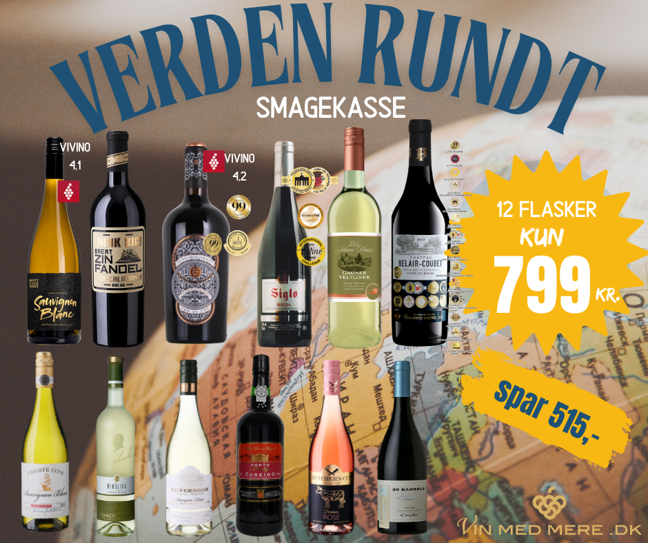 12 FLASKER GOD VIN FRA 12 FORSKELLIGE LANDE! KUN 799,- ★★★★★★ HELE 12 FLASKER LÆKKER VIN FRA HELE 12 FORSKELLIGE LANDE TIL KUN 799,- PR. KASSE! INKL. FRI FRAGT* DET ER MEGET BILLIGT! Kære Kunde, vi kan her præsentere en helt ny vinkasse. Vi har udvalgt 12 forskellige dejlige vine fra hele 12 forskellige lande. Mange af vinene har meget flotte anmeldelse og de er alle populære vine. Vi har stillet helt skarp på prisen, således at du får disse 12 smagfulde vine til en samlet pris på KUN 799 kr. + FRI FRAGT* DU SPARER HELE 515 KR. I FORHOLD TIL DE ENKELTE FLASKERS VEJL. STYKPRIS. Du ønskes god fornøjelse. De bedste vinhilsner VinMedMere.dk Vinkassen indeholder følgende lækre vine: 1 FLASKE Silverboom Special Reserve Sauvignon Blanc (SYDAFRIKA) (Vejl. 60 kr.) 1 FLASKE Lupo Meraviglia Tre di Tre Rosso 14,5% ( ITALIEN) (Vejl. 149 kr.) 1 FLASKE SIGLO RIOJA RESERVA 2010 75 cl. 13,5% (SPANIEN) (Vejl. 129 kr.) 1 FLASKE Château Belair-Coubet Vinmedmere Edition 2022 14%( FRANKRIG) (Vejl. 219 kr.) 1 FLASKE Rozès Caseiro Ruby Portvin 75 cl. - 19% (PORTUGAL) (Vejl. 79 kr.) 1 FLASKE Johann Klauss Grüner Veltliner 75 cl. - 12% (ØSTRIG) (Vejl. 61 kr.) 1 FLASKE Misty Cove Landmark Series Sauvignon Blanc 2023 13% ( NEW ZEALAND) (Vejl. 87 kr.) 1 FLASKE THINK BIG! Zinfandel 2022 75 cl. 14,5% (USA) (Vejl. 129 kr.) 1 FLASKE Cono Sur 20 Barrels Syrah Limited Edition - 14,5% ( CHILE) (Vejl. 103 kr.) 1 FLASKE Maybach Riesling Trocken - 12% ( TYSKLAND) (Vejl. 99 kr.) 1 FLASKE Kingston Estate The Frigate Cabernet Sauvignon Coonawarra 75 cl. - 13,5% (AUSTRALIEN) (Vejl. 149 kr.) 1 FLASKE Butcher's Cut Premium Rosé Mendoza 75 cl. ( ARGENTINA) (Vejl. 50 kr.) Silverboom Special Reserve Sauvignon Blanc Silverboom Special Reserve Sauvignon Blanc har en indbydende, klar, gylden farve. Vinen er sprød og frugtig med noter af stikkelsbær, grønne æbler og citrus. Silverboom Special Reserve Sauvignon Blanc er særdeles harmonisk med en let mineralsk undertone. Eftersmagen er behagelig og smyger sig elegant i ganen. Nyd vinen til thaimad, retter med lyst kød eller grøntsager eller til oste. Prøv også at servere vinen til desserten! Lupo Meraviglia Tre di Tre Rosso 14,5% ★★★★★ VIVINO 4,2 ★★★★★ LUCA MARONI 99 POINT ★★★★★ CONCOURS MONDIAL BRUXELLES GULD Du skal prøve den. Lupo Meraviglia Tre di Tre 2022 på 14,5% er en super dejlig rødvin med masser af smag. Vinen er lavet på de populære druer Negroamaro, Aglianico og Primitivo. Druerne vokser i den skønne solrige region Apulien, som udgør Italiens "hæl". Her udvælges de nøje til Botters blend. SIGLO RIOJA RESERVA 2010 75 cl. 13,5% ★★★★★ BERLINER WINE TROPHY - GULD ★★★★★ MUNDUS VINI -GULD ★★★★★ INT. WINE AND SPIRITS COM. - GULD Når du åbner Siglo Reserva Rioja 2010, er duften tæt & intens. Mørke bær, krydderrier, en smule teglkant i farven som hører sig til i en 15 år gammel vin. Stadig med bid, men taninerne har lagt sig meget pga. alderen, så den fremstår indsmigrende og afrundet. Det er ikke en bulderbasse, men mere raffineret og kompleks i udtrykket. Medium krop & fylde. Château Belair-Coubet Vinmedmere Edition 2022 14% ★★★★★ GULD - Decanter ★★★★★ GULD - International Wine & Spirits Awards ★★★★★ GULD - Asia Wine Trophy ★★★★★ GULD - Yves Beck ★★★★★ GULD - Frankfurt International Trophy ★★★★★ GULD - Concours de Bordeaux ★★★★★ GULD - Vinalies France ★★★★★ GULD - Berliner Wine Trophy ★★★★★ GULD - Japan Wine Awards ★★★★★ DOBBELT GULD - Europe Trophy Wine & Spirits ★★★★★ GULD - Concours De Lyon ★★★★★ GULD - Women´s International Trophy ★★★★★ GULD - 70 Millions De Consommatuers Comp. ★★★★★ 93+ POINT - Luca Gardini, Wine Killer Her er tale om en lækker moderne og virkelig vellavet Bordeaux rødvin lavet på et nøje udvalgt drueblend bestående af Cabernet Sauvignon og Merlot, som høstes ved håndkraft på Château Belair´s egne vinmarker i smukke Bordeaux. Vinstokkene er i gennemsnit 30-40 år gamle, hvilket giver en flot dybde. Vinen er fadlageret på franske egetræsfade i 12-14 mdr. Her er tale en virkelig elegant og vellavet rødvin, med fine frugtige tanniner, og en dejlig fylde med sine 14%. Rozès Caseiro Ruby Portvin 75 cl. - 19% Rozès Caseiro Ruby Port tilbyder fremragende værdi for pengene og er et godt valg for nybegyndere til portvinenes verden. Med sin ukomplicerede natur og livlige friskhed er den velegnet til både festlige lejligheder og hverdagsnydelse. En klassisk Ruby Port, der fanger Douro-dalens livlige frugt og tradition i et glas. På...