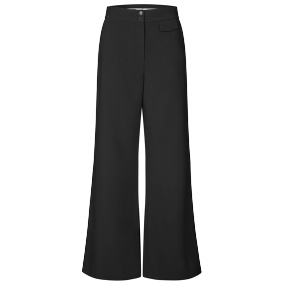 LamarsDEA Bukser fra Dea Kudibal er et par stilrene og feminine bukser med en høj talje og en pasform, der sidder tæt over hofterne, før benene falder ud i et let flare. Bukserne er fremstillet i en blød viskoseblanding i en klassisk sort-farve. De er nemme at style med en silkebluse for et elegant hverdagslook eller som en del af et gennemført sæt sammen med Yasma Blazeren.