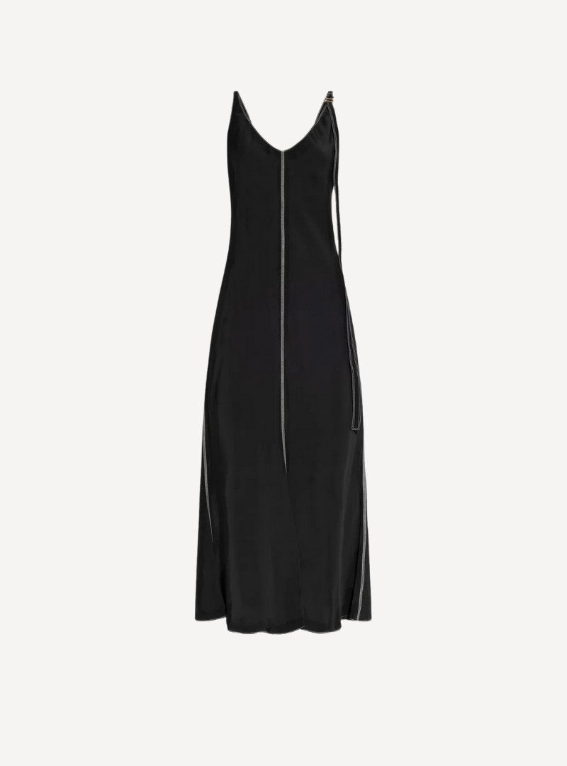 Sportmax Unione – Long Dress with Removable Shoulder Strap i sort er lavet af viskose med et vasket look. Kjolen har en mermaid-style fit med en dyb v-udskæring både foran og bagpå. Den ventre skulderstrop kan justeres med en s-formet metalring, mens den højre kan forkortes med en metalring bagpå. - Dame > TØJ > SALE > Black Friday > KJOLER > -40% - Unione Long Dress | Sort - 40