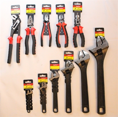 Am-Pro kvalitets håndværktøj, sæt bestående af : Kombinations tang 7" vare nr. 20028547 Skævbidder 6" til pianotråd vare nr. 20028517 Skævbidder 6" vare nr. 20029016 Vandpumpe tang 9 1/2" vare nr. 20028571 Spidstang 6" vare nr. 20028506 Svensknøgle 4" vare nr. 20039824 Svensknøgle 6" vare nr. 20039826 Svensknøgle 8" vare nr. 20039828 Svensknøgle 10" vare nr. 20039830 Svensknøgle 12" vare nr. 20039832 Svensknøgle 15" vare nr. 20039835 ialt 11 dele.