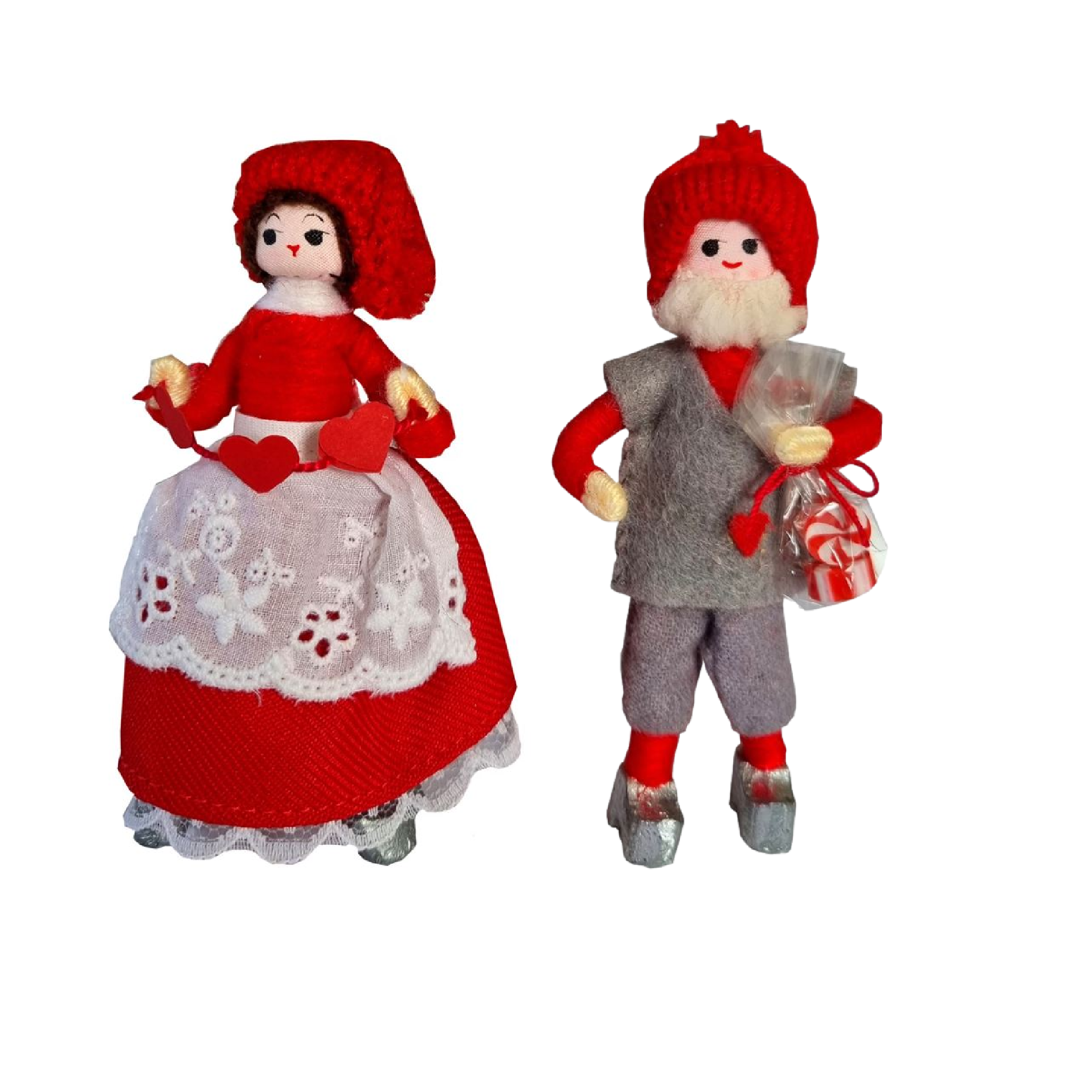 Årets nissepar 2023 fra Anne Beate Design Højde: ca. 11 cm Alle Anne Beate nisser er håndlavede og håndmalede. Alt er håndarbejde, lige fra de små håndstøbte zinktræsko til det fint syede tøj. Nisserne er lavet over et stålskelet og er derfor bøjelige og kan let formes til at stå som man ønsker. Anne Beate nisserne er lavet med stort omhu og koncentration, lige fra de fint beviklinger til de fine små detaljer. Nisserne bliver fremstillet både i Ringsted i Danmark og på et workshop i Hanoi i Vietnam.