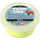 Foam Clay, Selvhærdende modelleringsmateriale med små perler. Er ideel til beklædning/modellering omkring div. emner.Leveres i praktiske dåser og skal opbevares i lufttæt emballage efter åbning, 35gr. glitter gul.