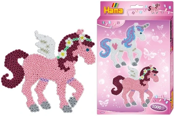 Indeholder: ca. 2.000 midi perler ass. farver, 1stk. enhjørning stiftplade nr. 315, motivark, vejledning og strygepapir.