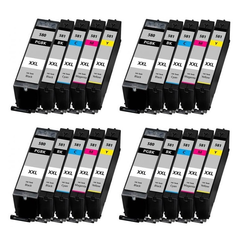 Canon 580 / 581 XXL B/B/C/M/Y 20 blækpatroner kompatibel