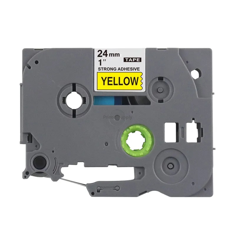 Kompatibel Brother TZeS651 / TZe-S651 sort tekst på gul tape 24mm x 8m (ekstra stærk) med prisgaranti og hurtig fragt