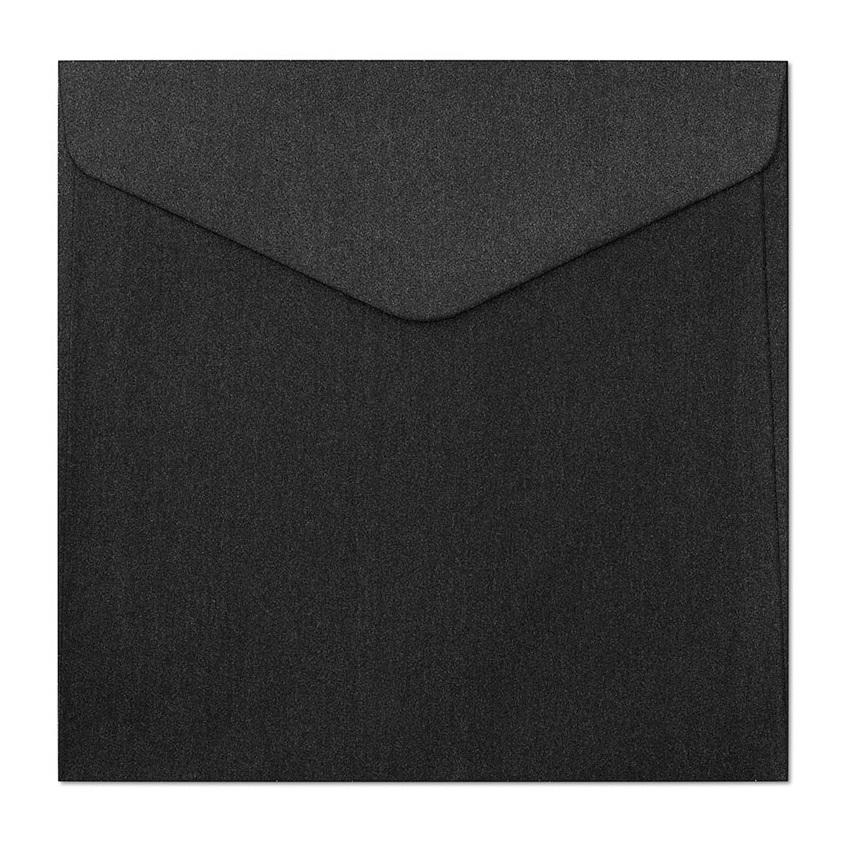 Firkantede sorte konvolutter i elegant shine finish, perfekte til invitationer, gavekort og andre specielle lejligheder. Vælg mellem mange forskellige størrelser og farver. • Antal: 10 stk. pr. pakke• Størrelse: 16cm x 16cm• Vådlimet• Vægt: 150g/m2
