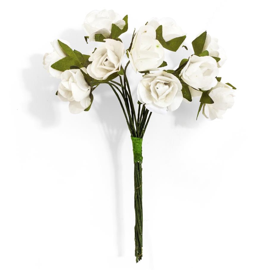 Creme roser blomster bundt med formbar stilk 9cm, 12 stk.