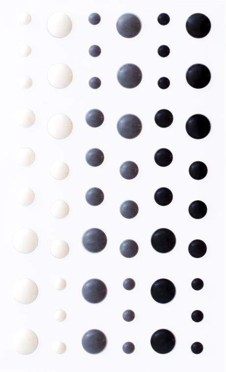 Hvide/grå/sorte selvklæbende prikker - mix størrelser og farver 4-7mm, 54 stk.
