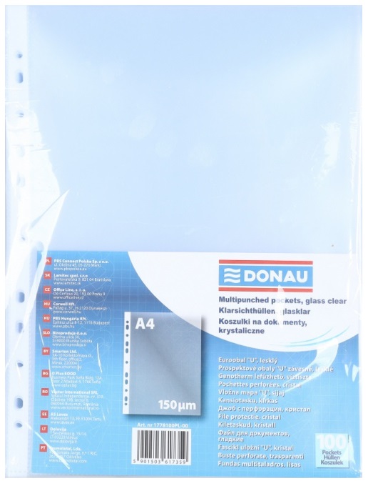 Plastlommer leverer optimal beskyttelse mod skader og snavs. Med praktisk åbning i venstre top er det nemt at indsætte og fjerne dokumenter hurtigt og effektivt. Vores plastiklommer i A4 størrelse er fremstillet af slidstærk, miljøvenlig polypropylenfolie med en fantastisk tykkelse på 150 mikron/my. Dette sikrer, at dine dokumenter forbliver beskyttede og i fremragende stand gennem en lang periode. Vælg vores produkt for optimal holdbarhed og bæredygtighed, der opfylder dine professionelle behov. Ideelt til både kontorbrug og privat opbevaring. A4 plastlommer i høj kvalitet er det ideelle valg til kontoret, skolen eller hjemmet. Designet til effektiv opbevaring af rapporter, præsentationer, regneark og billeder, sikrer de, at dine dokumenter forbliver beskyttede og organiserede. Med 100 plastiklommer pr. pakke, har du god plads til at bevare dine vigtige materialer. Invester i kvalitet og funktionalitet.• Velegnet til A4-dokumenter• Åbning i toppen• Materiale: Miljøvenlig polypropylenfolie• Forstærket kant• 11 huller• Antal i pakken: 100 stk