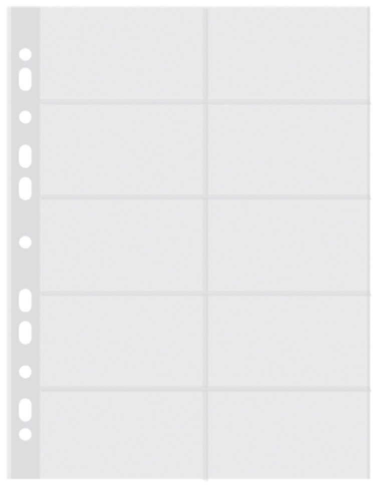 Plastlommer til visitkort giver optimal beskyttelse mod skader og snavs. Der er plads til til 10 enkeltsidede eller 20 dobbeltsidede visitkort på 95x60 mm i hver plastlomme. Vores plastiklommer til visitkort er fremstillet af slidstærk, miljøvenlig polypropylenfolie med en god tykkelse på 50 mikron/my. Dette sikrer, at dine visitkort forbliver beskyttede og i fremragende stand gennem en lang periode. Med 10 stærke plastiklommer pr. pakke, er der plads til minimum 100 visitkort i denne pakke. • Velegnet til visitkort (95x60mm)• Krystalklar, gennemsigtig overflade• Materiale: Miljøvenlig polypropylenfolie• Forstærket kant• 11 huller• Antal i pakken: 10 stk