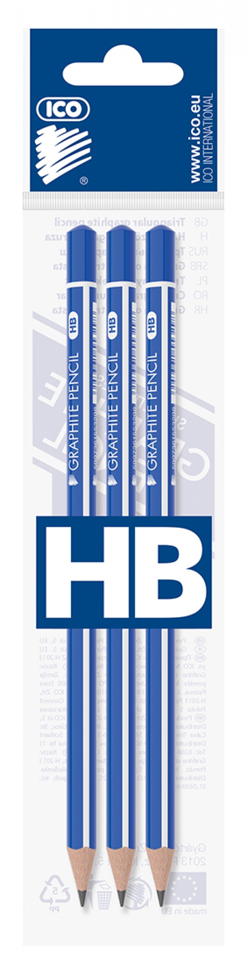 Blyanter med ophæng trekantede HB blå/hvid - 3 stk