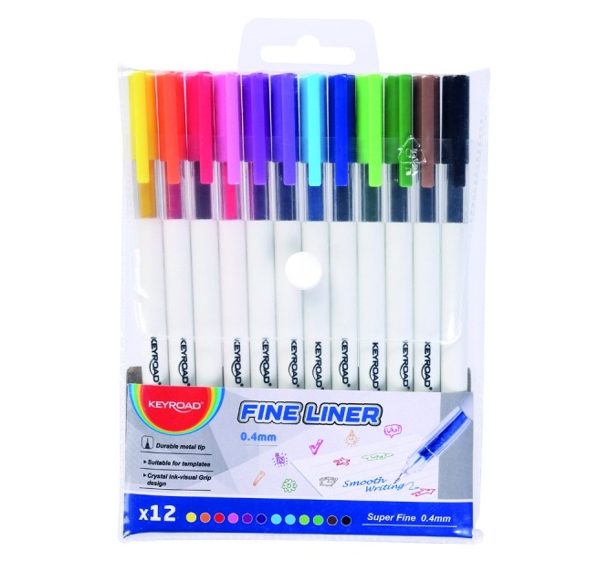 Fineliner sæt med 12 farver tuscher 0,4 mm blisterpakke