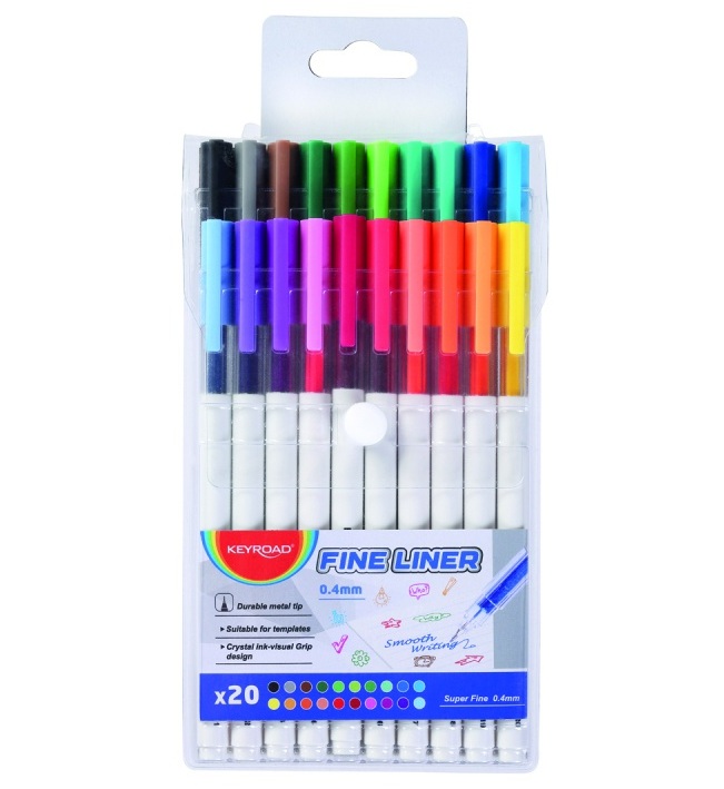 Fineliner sæt med 20 farver tuscher 0,4 mm blisterpakke