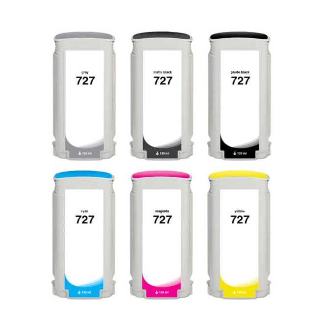 HP 727 rabatpakke kompatibel med alle 6 farver: mat sort, foto sort, grå, cyan, magenta og gul blækpatron, i alt 780ml indhold. Perfekt kvalitet. Store besparelser. Fuld printergaranti. 365 dages returret. Print uden risiko. Printere som rabatpakken bl.a. passer til:HP Designjet T1500HP Designjet T1500 914mm ePrinterHP Designjet T1530HP Designjet T2500HP Designjet T2500 914mm PostScript eMultifunctionHP Designjet T2530HP Designjet T2530 36-inHP Designjet T2530 914-mm PostScriptHP Designjet T920HP Designjet T920 914mm PostScript ePrinterHP Designjet T930 Hvis din printer ikke er listet herover, så kontakt os venligst for hjælp.